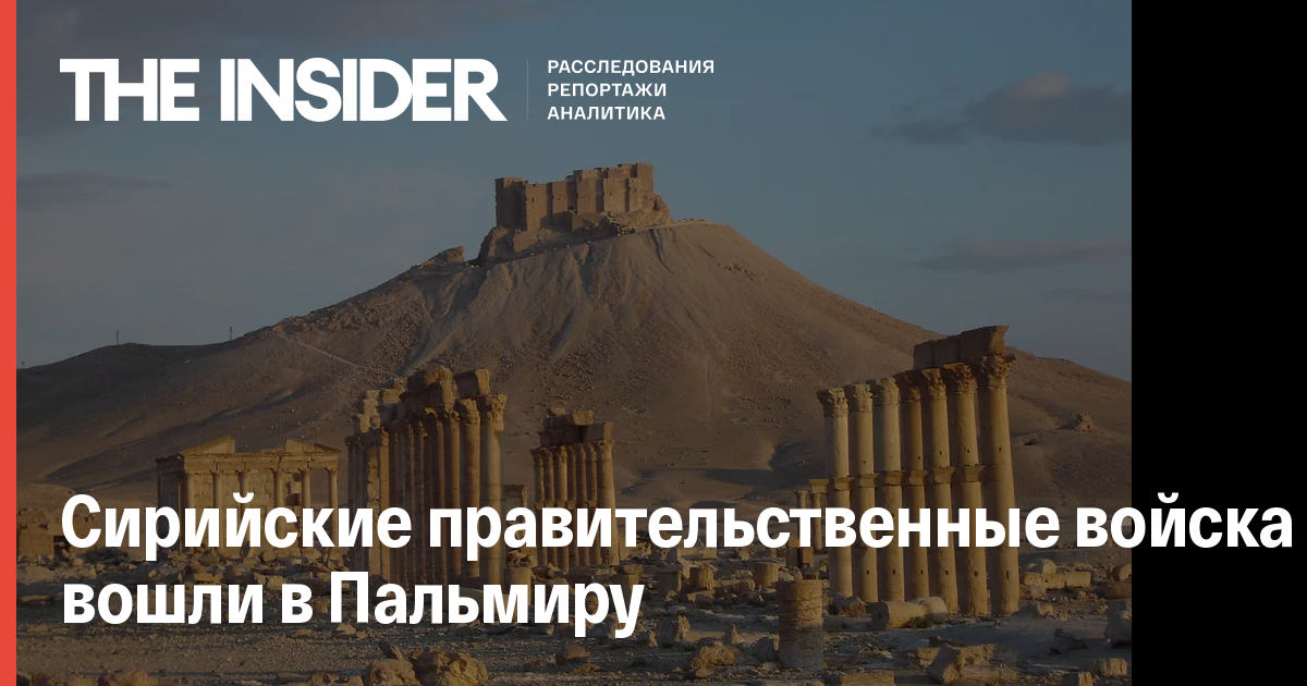 Сирийское государственное ТВ сообщило, что правительственные войска с боем вошли в Пальмиру. Таким образом, им удалось вернуть контроль над городом, который находился под контролем «Исламского государства».