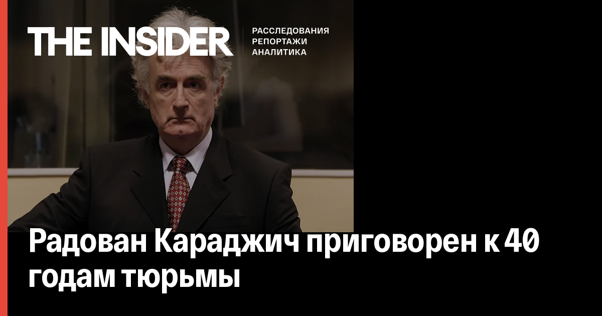 Международный трибунал по бывшей Югославии приговорил бывшего лидера боснийских сербов Радована Караджича к 40 годам тюрьмы за геноцид и военные преступления боснийской войны 1990-х годов.
