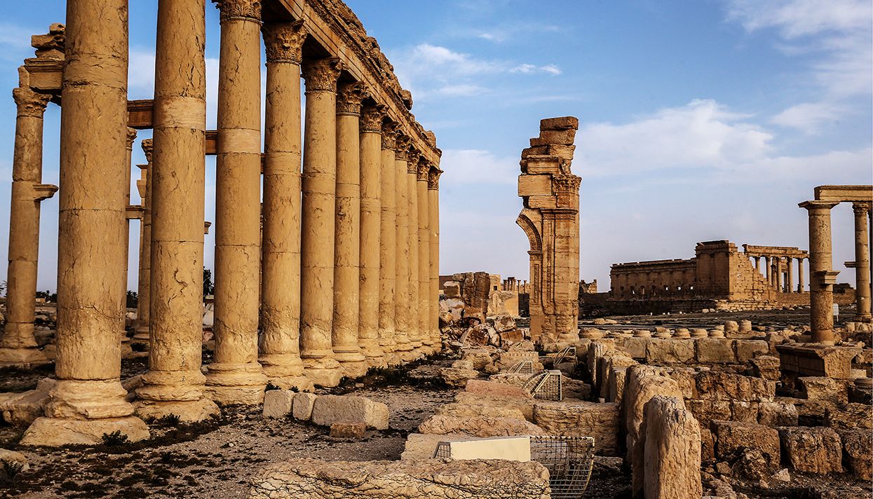 После освобождения Пальмиры в эфир попал ролик, снятый российским беспилотником. В кадре оказались разрушенный храм Бэла и знаменитая триумфальная арка — взорванная. Когда чуть позже появились фотографии с места событий, стало ясно, что уцелело одно из самых восхитительных сооружений города — тетракионион (в англоязычной литературе его чаще называют тетрапилоном): квадратная платформа, по углам которой стоят одинаковые сооружения, состоящие из четырех колонн. Неплохо, кажется, сохранились и колоннады больших улиц, и римский театр. Неудивительно, что Маамун Абдулкарим, директор департамента древностей и музеев Сирии, выступил довольно оптимистично: «Мы ожидали худшего, однако местность, в целом, в хорошем состоянии. Мы могли полностью потерять Пальмиру».
