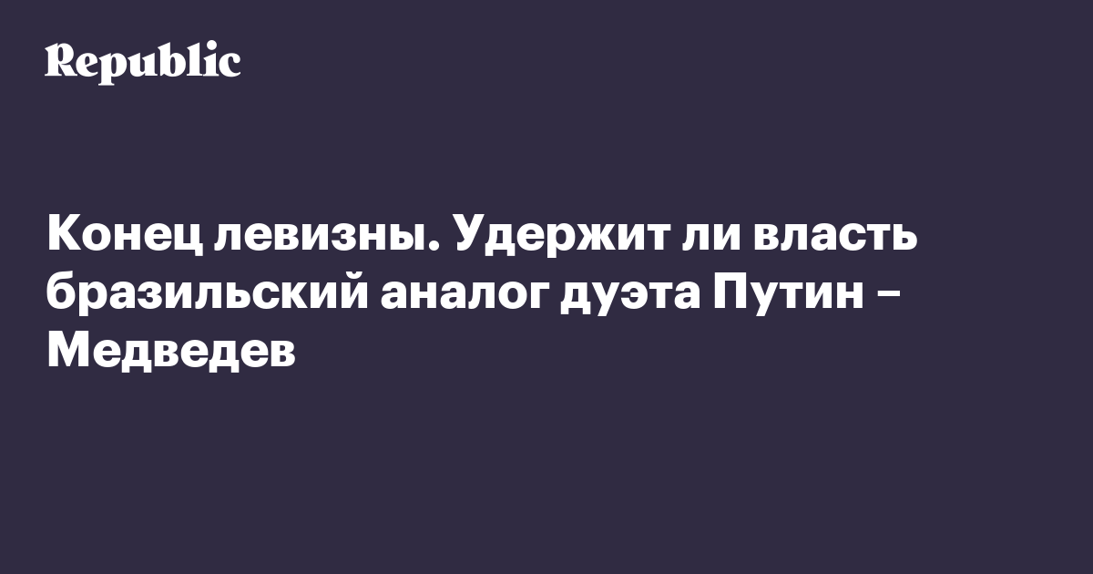 Конец левизны. Удержит ли власть бразильский аналог дуэта Путин – Медведев