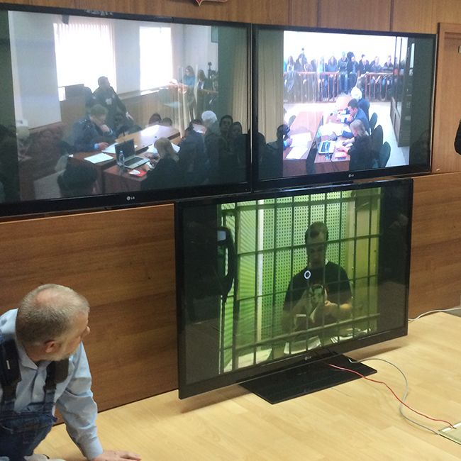 — Позор российскому правосудию! Позор! — скандируют все 80 сочувствующих в зале с видеотрансляцией.
