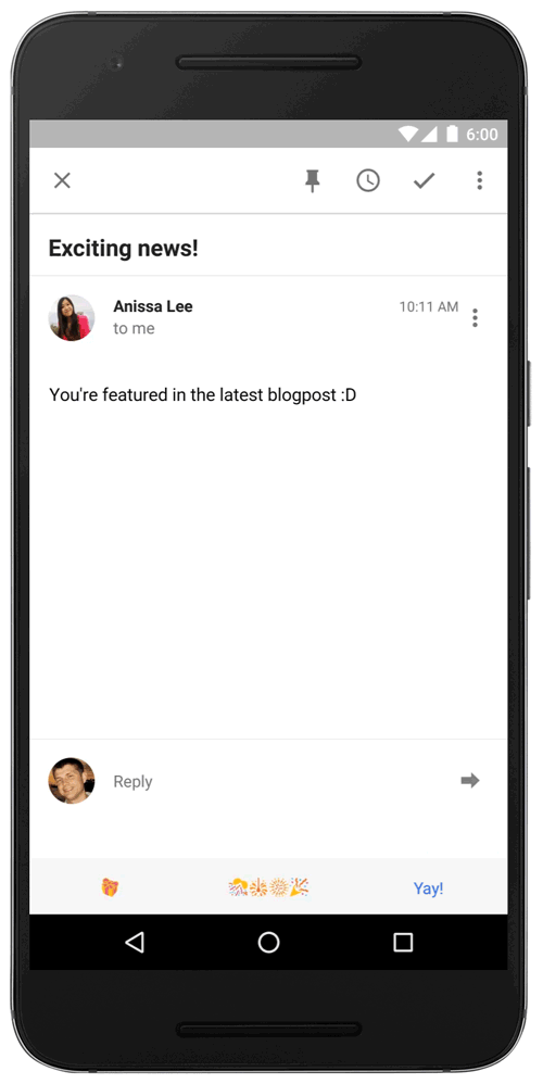 Почтовый сервис Inbox научился предлагать пользователям варианты для ответа на полученное письмо. Причем варианты состоят из разных эмодзи («Медузе» опробовать эту функцию не удалось).