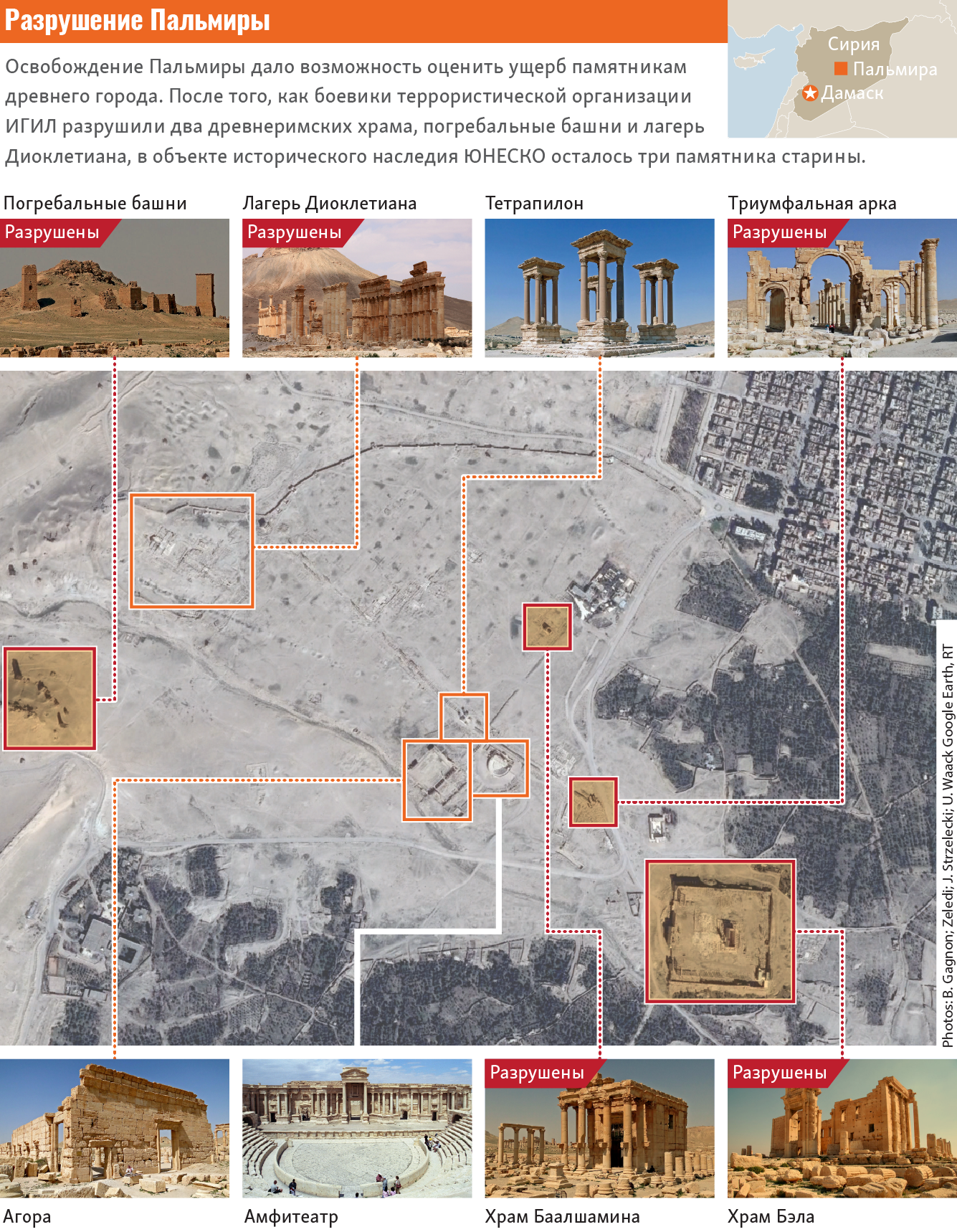 – Сейчас еще сложно оценить уровень разрушения. Очень многие памятники города были уничтожены или частично пострадали. Например, погребальные башни – уже видно, что они разрушены, а это очень большая потеря. Храм Бэла был феноменальным, и он разрушен, триумфальная арка, часть колоннады. Да, мы опасались, что может быть и хуже, потому что мы не знали, что там происходит. Но разрушений все равно много. Сейчас есть некоторое чувство облегчения, что не все потеряно, остались монументы древности, которые выглядят нетронутыми, – театр, например. Но процесс восстановления этих объектов будет очень долгим и потребует множества усилий.