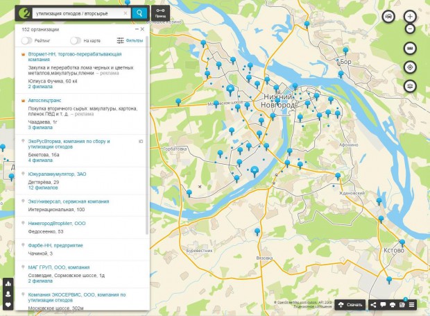 Сейчас на сайте есть информация о 152 организациях (пункты приема макулатуры, пластика, стекла и металлического лома). В среднем на сайт 2ГИС ежедневно заходит около 200 тысяч человек.