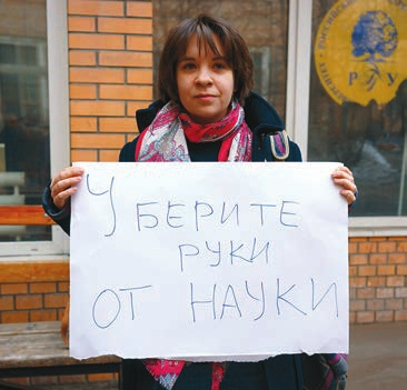 плакатом «Уберите руки от науки». Фото Н. Деминой