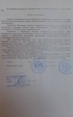 В деле же о призывах к сепаратизму ключевую роль сыграли результаты психиатрической экспертизы, которая была проведена еще в августе. По словам Татьяны Морошкиной, беседа ее сына со специалистом заняла всего пять минут, в остальном авторы экспертизы ссылаются на материалы дела и предоставленные медицинские справки (такая психиатрическая экспертиза как раз и носит неофициальное название «пятиминутка»). Ранее Морошкин на учете у психиатра не состоял, бумага, свидетельствующая об этом, также есть в деле. Довольно давно ему был поставлен диагноз «эпилепсия», по поводу чего семья дважды обращалась в частную клинику. Эти справки тоже попали в дело, но судмедэксперты поставили ему диагноз «параноидная шизофрения» с формулировкой «бред реформаторства религиозного толка». Поводом для этого, по-видимому, послужили сетевые публикации и интервью Морошкина, посвященные придуманной им виртуальной Церкви Челябинского Метеорита. В 2014 году он, объявив себя настоятелем этой церкви, потребовал от региональных властей передать его последователям Челябинский метеорит, упавший 15 февраля 2013 года в озеро Чебаркуль, и настаивал на установке в областном центре храма метеорита.