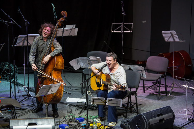 Итак, альбом «Гроза» — если и театр у микрофона, то чисто ленинградский. Именно потому, что кроме песен Анатолия Гуницкого и Введенского в диск «Гроза» инсталлирован голос ленинградского геолога, абсурдиста и автора «Пушкинского Дома» Андрея Битова. Был когда-то впечатляющий «Пушкин-бэнд» под руководством другого сооснователя «Аквариума», Александра (Фагота) Александрова. Тот бэнд исполнял черновики Пушкина на знаменитом концерте в Нью-Йорке 1998 года (диск «Часы печальных иль» выпущен в 1999-м) при продюсерстве Николая Дмитриева: Андрей Битов (голос), Владимир Тарасов (ударные), Владимир Волков (контрабас), Юрий Парфенов (труба), Александр Александров (фагот). В нашем случае интрига концерта-презентации диска «Гроза», назначенного в ЦДХ на 15 апреля, именно в том, удастся ли Волкову—Федорову уговорить Андрея Битова выйти на сцену.