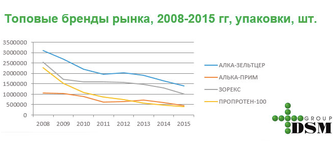 Продажи средств от похмелья в 2014-2015 гг. падали и в аптеках, и в супермаркетах, пришлось поднимать цену, говорит сотрудник одного из фармпроизводителей таких препаратов. Он связывает это скорее со снижением потребительской способности, чем с сокращением потребления алкоголя: «Люди экономят».