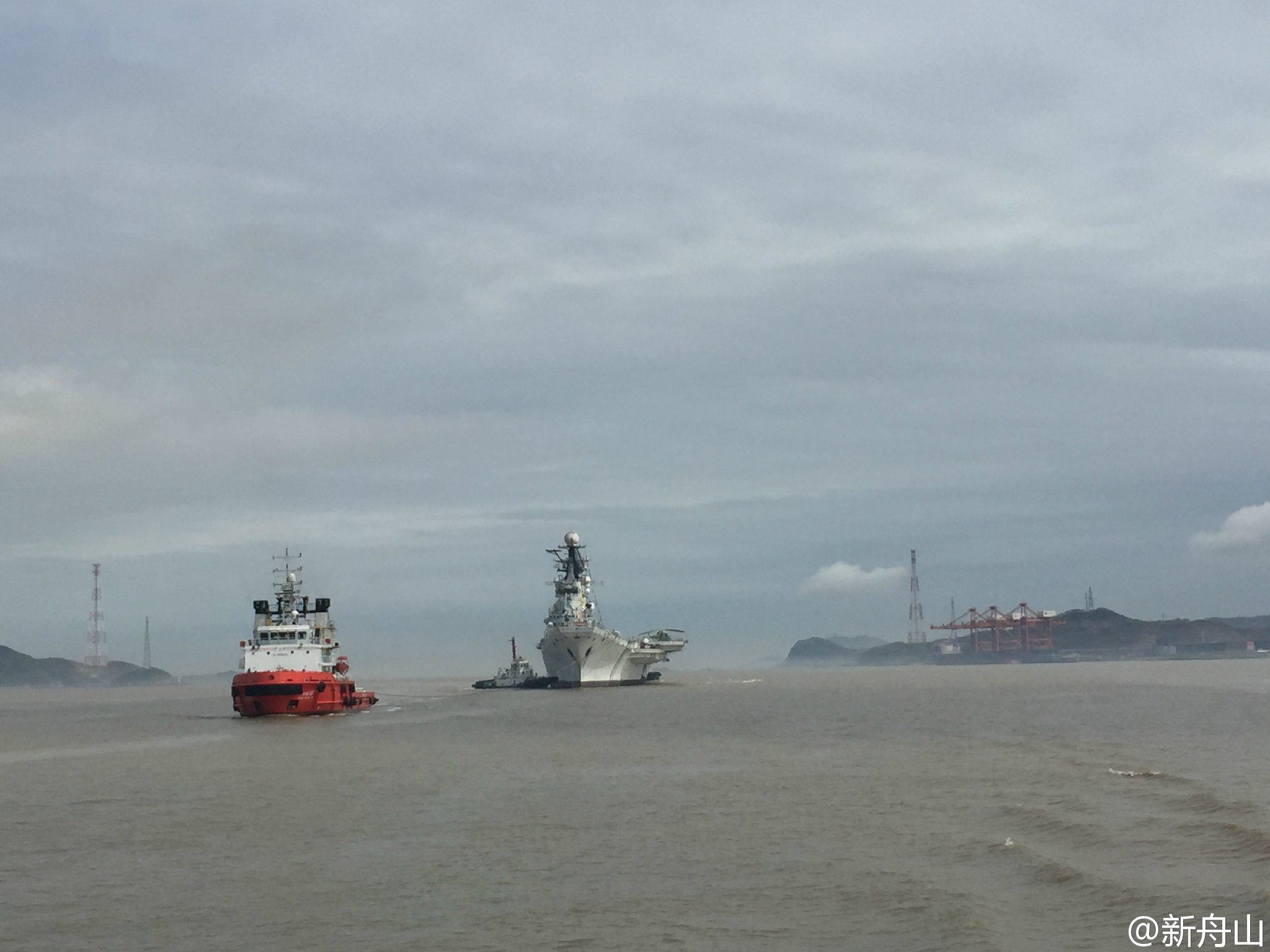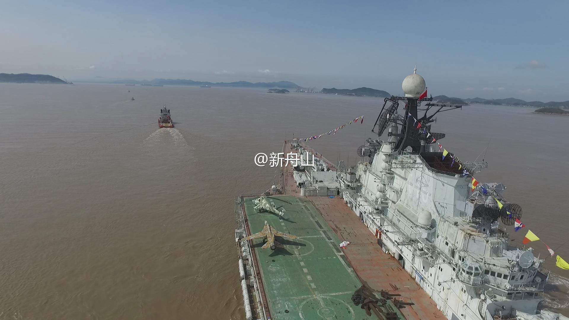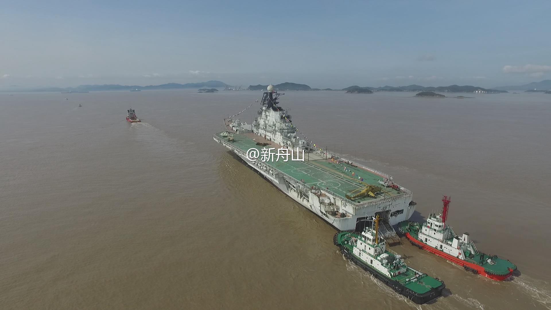 Сейчас авианесущий крейсер находится на судостроительном заводе в городе Чжоушань, куда он прибыл 8 апреля. Корабль буксировали изШэньчжэня в Чжоушань шесть суток.