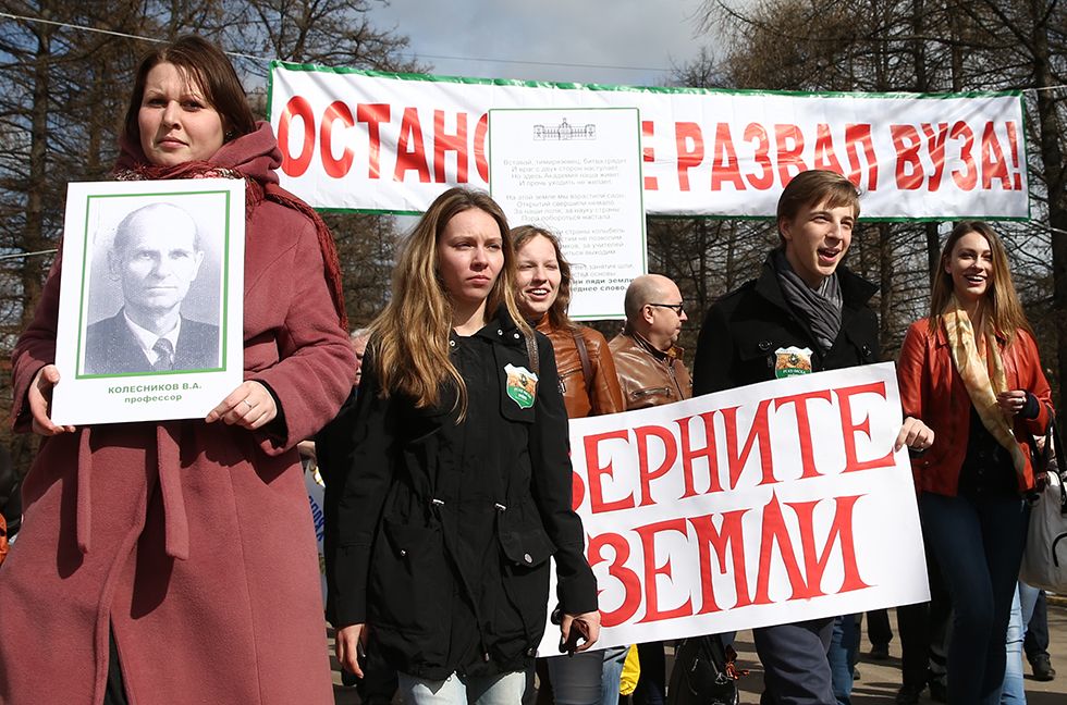 11 апреля на севере Москвы прошел митинг против передачи земель Тимирязевской академии под коммерческую застройку. На акцию протеста собралось около 500 человек — с портретами ученых, копнами пшеницы и георгиевскими ленточками. Требования студентов и преподавателей академии были частично удовлетворены прямо в ходе проведения акции: выяснилось, что премьер-министр Дмитрий Медведев днем 11 апреля поручил провести дополнительные общественные слушания об отчуждении земель академии.