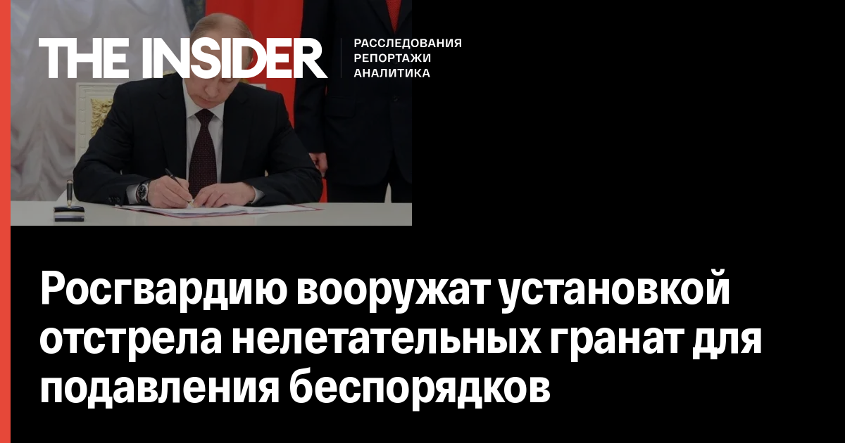 Для Федеральной службы войск Национальной гвардии России, которая в проекте указа президента РФ Владимира Путина «О Федеральной службе войск национальная гвардия РФ» (сокращенно Росгвардия) создается восьмиствольная установка отстрела нелетательных гранат, способная на 200 метров стрелять светозвуковыми и дымовыми гранатами, а также сбрасывать «улавливающие сетки» на участников беспорядков. Об этом пишет агентство городских новостей "Москва" со ссылкой на документы МВД, содержащие сведения о разработке такой установки.
