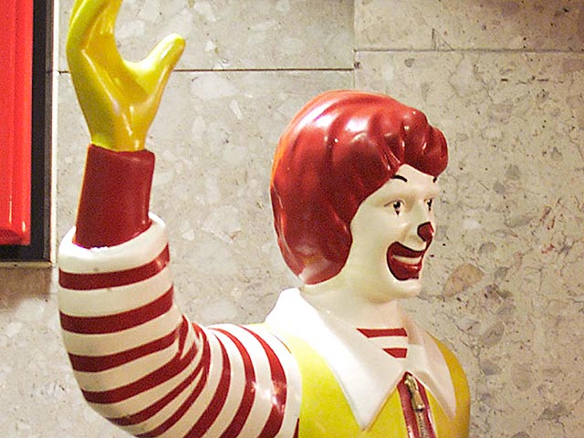 Фигура клоуна Рональда Макдональда стала жертвой излишнего рвения муниципальной полиции (чэнгуань) города Гуанчжоу на юге Китая в борьбе за чистоту тротуаров. В минувшее воскресенье несколько сотрудников чэнгуань унесли Рональда от входа в ресторан Macdonald's.
