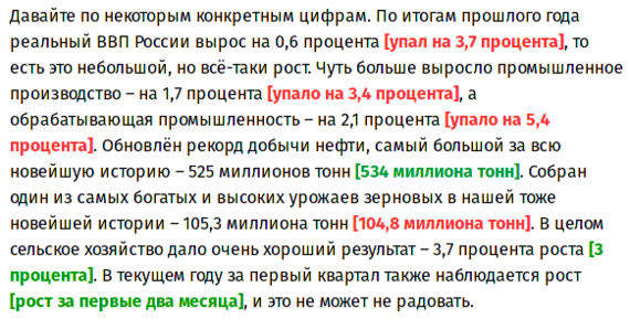 Обычно Путин в начале пресс-конференции всегда сыпет цифрами. Наш отдел фактчека взял прошлую «Прямую линию» и вставил актуальные цифры.