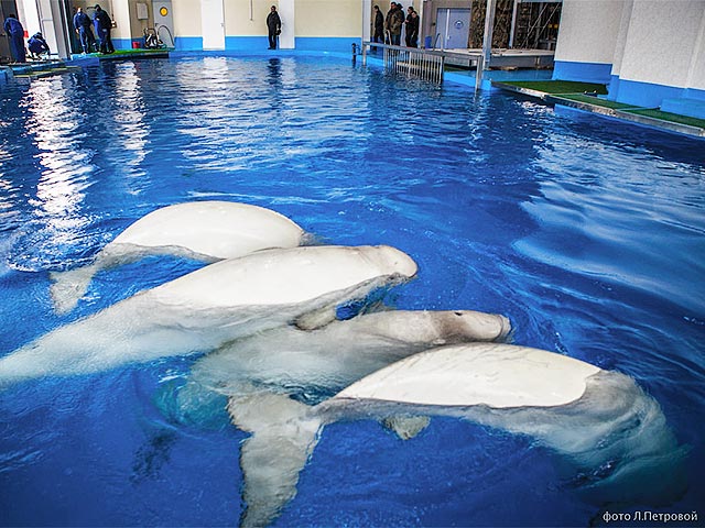 Всего в океанариуме было 10 белух. Все они жили в открытых вольерах базы исследования морских млекопитающих (БИММ) в бухте Парис. 13 апреля сайт океанариума сообщил, что четверо самых молодых белух - самки Юкки, Лена и Маруся и самец Бриз - были перебазированы в бассейн главного корпуса заведения. Какая из них погибла - пока не ясно.