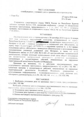 В Бурятии заведено дело на Владимира Хагдаева, администратора группы в соцсети «ВКонтакте», посвященной идеям панмонголизма — учения о единении монголов и возрождении их культуры и обычаев. Об этом сообщается в блоге пользователя evrobur в LiveJournal. Хагдаева подозревают в призывах к нарушению территориальной целостности РФ.