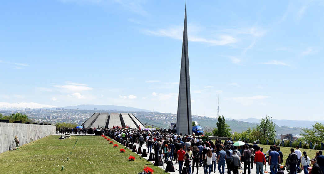 В Ереване президент Армении Серж Саргсян с супругой Ритой Саргсян и в сопровождении политического и духовного руководства посетил в воскресенье мемориал "Цицернакаберд", чтобы почтить память жертв резни армян 1915 года в Османской империи.