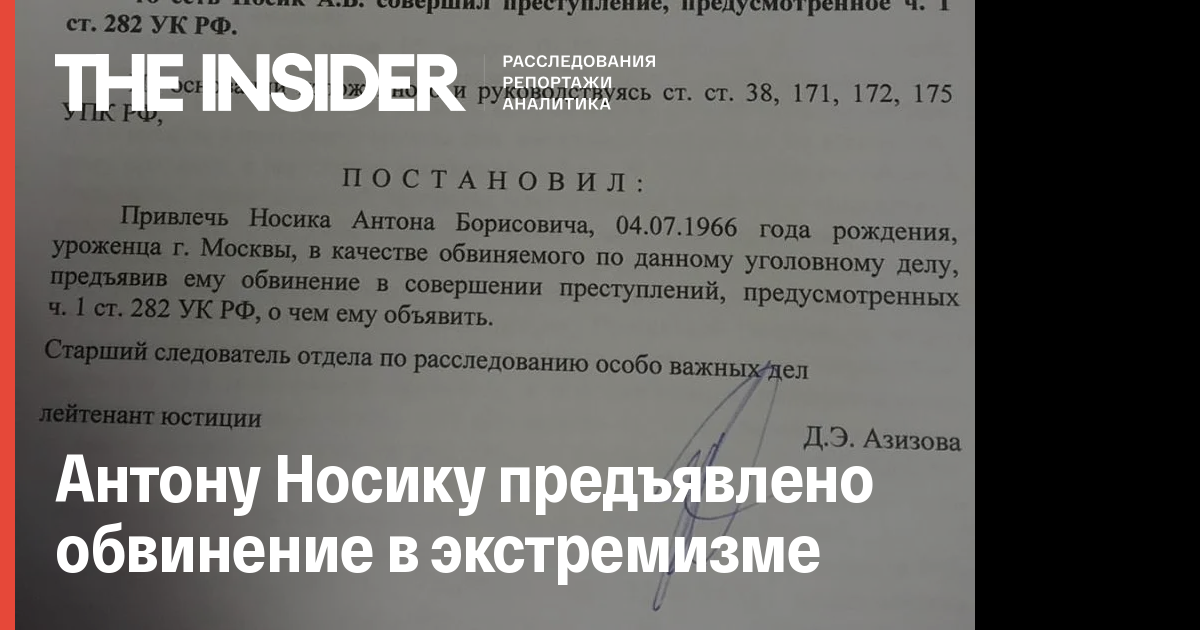 Антону Носику официально предъявили обвинение в экстремизме, об это блоггер написал в своем фейсбуке. Поводом для обвинений послужила запись в ЖЖ «Стереть Сирию с лица земли» по поводу бомбардировок Сирии.
