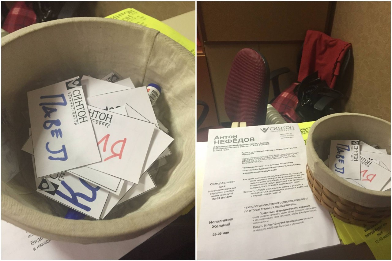 На стенах полуподвального офиса — фотографии уверенных в себе коучей. Симпатичная девушка выдает мне табличку с именем, просит надеть бахилы и пройти в соседнюю комнату, где уже начался базовый тренинг по мастерству коммуникации. На сайте написано, что это один из самых известных тренингов в России, о котором люди говорят: «Это перевернуло мою жизнь». Захожу в комнату, и меня приветствуют аплодисментами 15 человек, жизнь которых через два дня должна перевернуться.