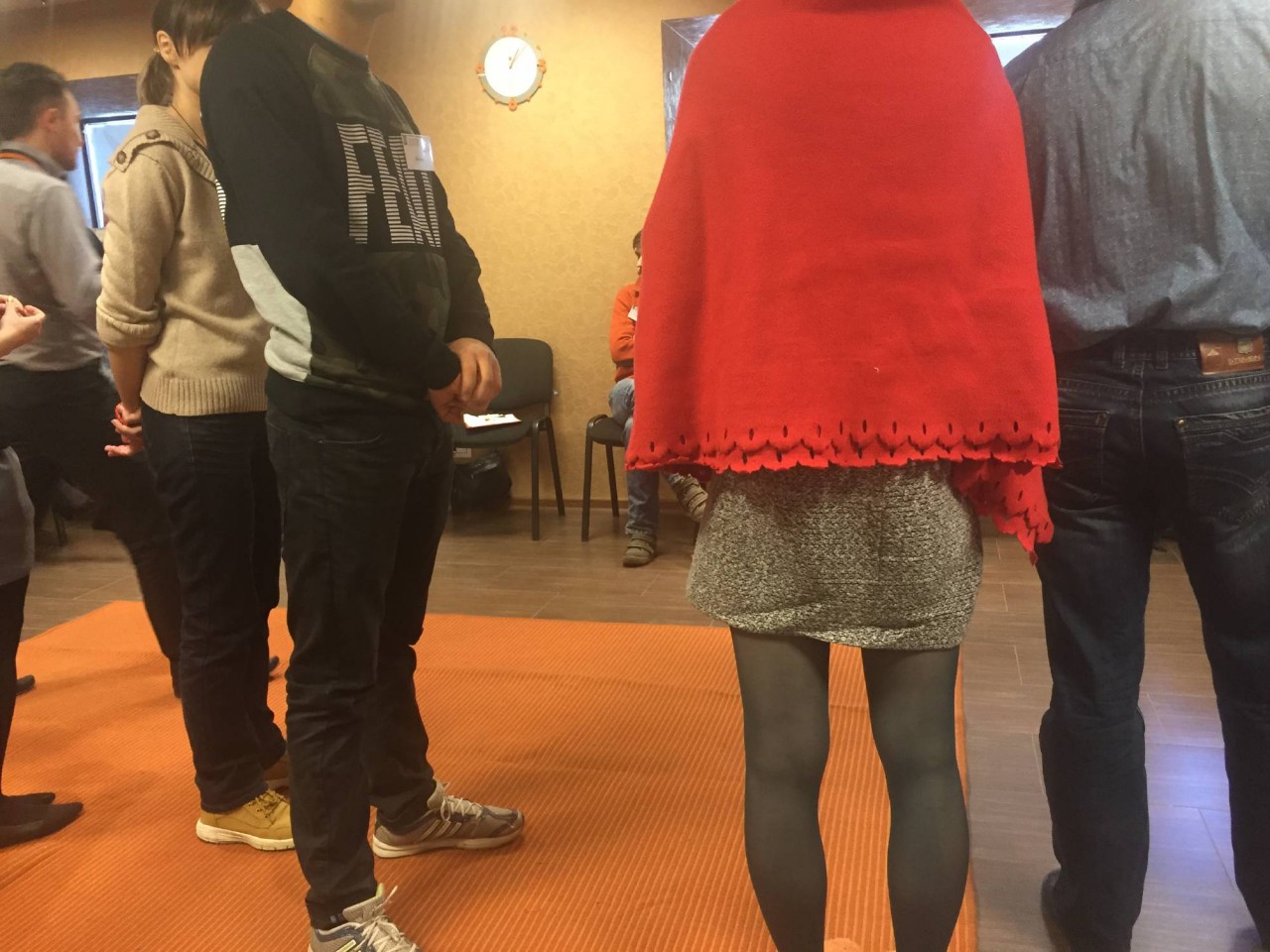 Мы начинаем практиковать фоновые упражнения. Делать это неловко, но теперь мы знаем, что чем более неловко ты себя чувствуешь, тем увереннее ты выходишь из зоны комфорта. Разбившись на пары, мы практикуем «царственность». Мне достается очень скромный программист Сергей. Нужно расслабиться, выдохнуть, одновременно подтянуться и пройти по воображаемому подиуму как царь: уверенно — так, чтобы люди к тебе потянулись. Сергей очень старается, но он слишком напряжен. Он ходит снова и снова, в десятый раз я вру ему, что стало гораздо лучше. Теперь моя очередь. Я хожу по комнате взад и вперед и все время думаю, куда девать руки. Нелепое чувство. Но одновременно я практикую «тотальное да» и говорю его чувству нелепости.