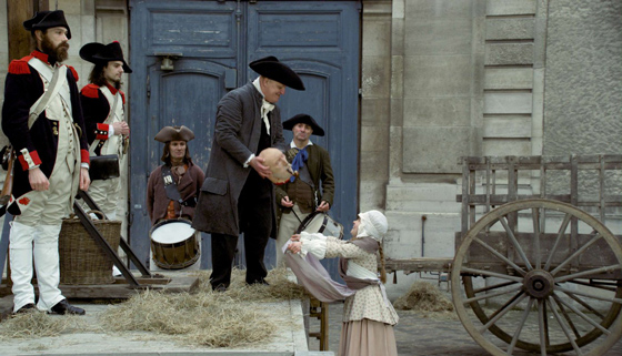 Палач, слюнявя палец, проверяет остроту гильотины. На деревянной тележке везут преступника в парике и с трубкой в зубах. Зачитывается обвинение: революционный трибунал обвиняет барона Бальтазара в преступной переписке. Публика — сплошь женщины с вязанием в руках и в чепчиках на головах — радостно вопит и ликует. Приговоренного просят вынуть трубку изо рта, но он отрицательно качает головой. Пять секунд спустя палач держит голову Бальтазара (с неизменной трубкой, а как же). Одна из зрительниц под завистливыми взглядами других забирает окровавленный череп себе в подол, а затем заботливо укладывает в корзинку для шитья.