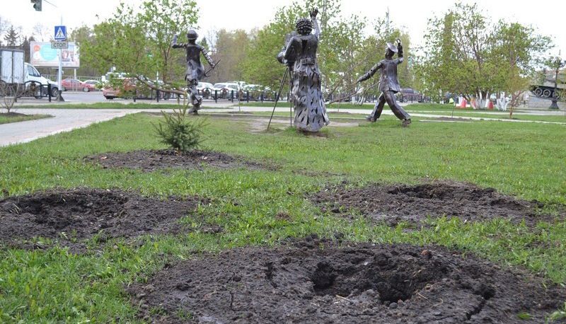 Veterans and students came together to plant trees in downtown Barnaul. And then somebody dug them up.