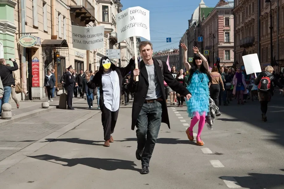 Поэтому этот день ждали как единственный шанс те, кто в другое время не мог свободно пройти по своему городу. Хотя порой вокруг (увидев ненавистные им флаги и транспаранты) скакали «нашисты» и «молодогвардейцы», гопники из НОДа и депутат Милонов. Но пройти по Невскому могли все. Тем более что, по городскому закону, во все дни, кроме праздничных, Невский проспект закрыт для массовых акций.