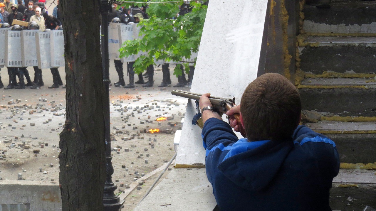 Я несколько раз пересекал "линию фронта", чтобы показать зрителям события с одной и с другой стороны. Около шести часов вечера я стоял возле Болгарского культурного центра, и один из лидеров Антимайдана комментировал происходящее на мою камеру. Прямо напротив нас сплошным потоком выносили пострадавших – у всех были огнестрельные ранения. Позже я узнал, что именно в это время за углом, с балкона культурного центра, открыли огонь из охотничьего ружья. В зоне обстрела оказались милиционеры, активисты Антимайдана и журналисты. Получил ранение редактор "Думской" Олег Константинов, который к тому времени примчался в центр и фотографировал в самой гуще событий, в его теле остались четыре картечины, одна из них – в двух сантиметрах от позвоночника. Погибли Александр Жульков, Геннадий Петров и Николай Яворский, а Евгений Лосинский получил тяжелое ранение картечью в живот.