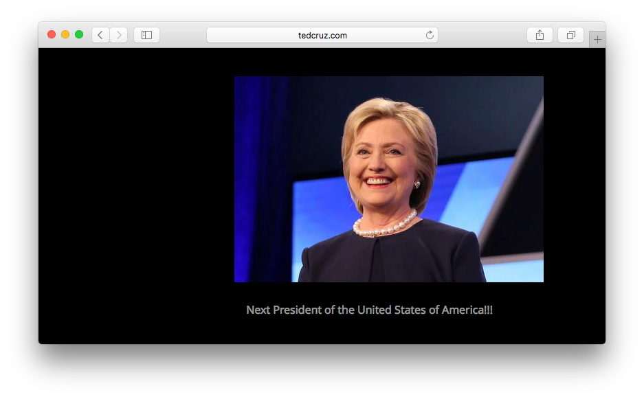 Кампания Теда Круза не задалась с самого начала — еще когда он по какой-то причине не смог купить себе домен TedCruz.com и был вынужден обходиться TedCruz.org (на TedCruz.com теперь красуется Хиллари Клинтон). Этот урок ничему его не научил: в конце апреля Круз прошляпил еще один важный домен. Как только политик объявил, что в случае успеха он сделает бывшего кандидата в президенты Карли Фиорину своим вице-президентом, консультант республиканской партии стремительно зарегистрировал адрес CruzFiorina.com, вынудив Круза пользоваться менее благозвучным CruzCarly.com.