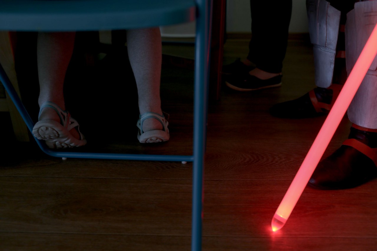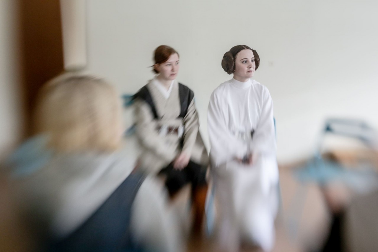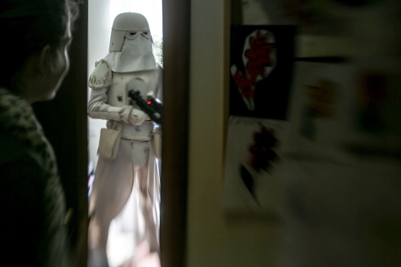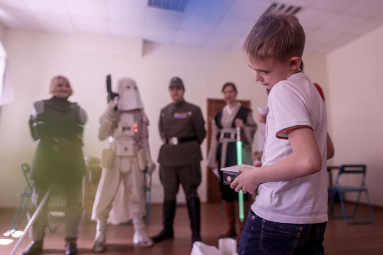 Преодолев временную петлю, сотни миллионов световых лет и переместившись из далекой Галактики в Млечный путь, имперский адмирал, офицер имперской разведки, имперский штурмовик в обмундировании для снежных условий, владыка ситх времен Старой республики, юная джедай, принцесса Лея, Амидала и фотограф Денис оказались на просторной кухне центра «Пространство общения», помогающего социализации детей с особенностями развития. Подкрепляясь после долгого пути крекерами и газировкой, пришельцы из «Звездных войн» рассказывают ТД о себе, своей организации и цели своего визита на Землю и, собственно, в «Пространство». Сегодня эта команда проведет инициацию детей (среди которых большинство — со странностями в развитии) в юнлингов, младших джедаев.