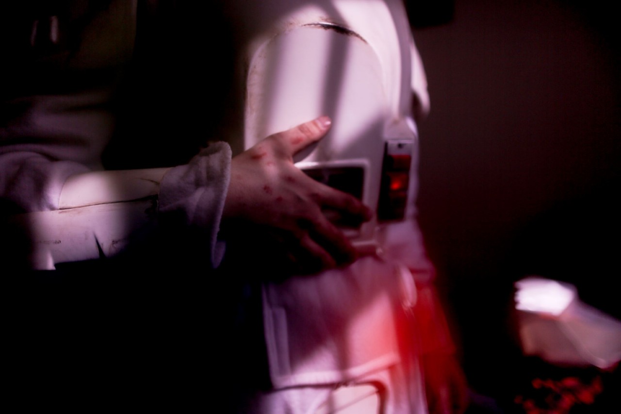 Никита падает на пол, лежит так какое-то время, резко встает и задумчиво произносит: