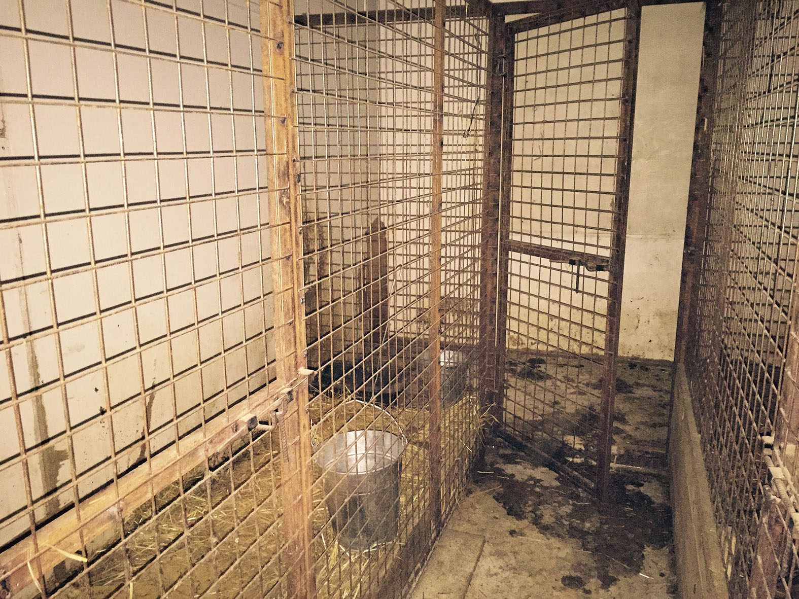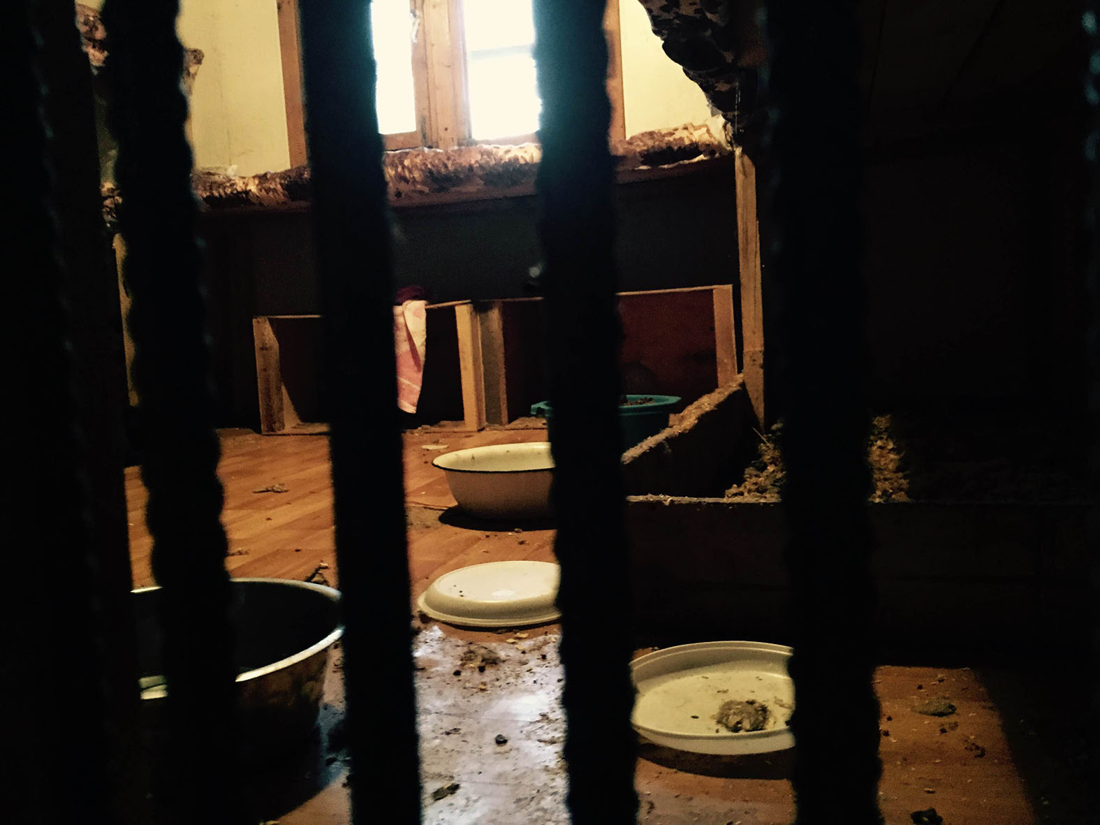 К утру субботы, 30 апреля, животных в приюте «ЭКО Вешняки» не осталось. На территорию для осмотра вольеров пустили несколько человек — чтобы оставшиеся зоозащитники, наконец, успокоились и отошли от ворот. Прогнившие доски на полу опустевших вольеров были покрыты толстым слоем прелого сена, перемешанного с экскрементами. Один из вольеров оказался заперт на цепь с замком, внутри — отдельная темная комната с тяжелой дверью, пол присыпан опилками, которые, очевидно, последний раз меняли очень давно. Три собаки, лежавшие на полу комнаты, не отреагировали ни на открытую дверь, ни на свет, ни на людей.