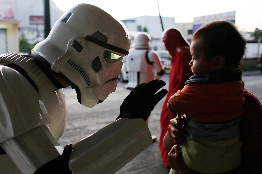 4 мая традиционно считается «Днем „Звездных войн“» — из-за созвучия английского произношения даты с фразой из киносаги «Да пребудет с вами Сила» («May the fourth» — «May the Force be with you»). В этот день фанаты «Звездных войн» облачаются в костюмы любимых героев, будь то имперские штурмовики или Чубакка, и выходят на улицы. «Медуза» посмотрела, как «День „Звездных войн“» отметили в этом году.