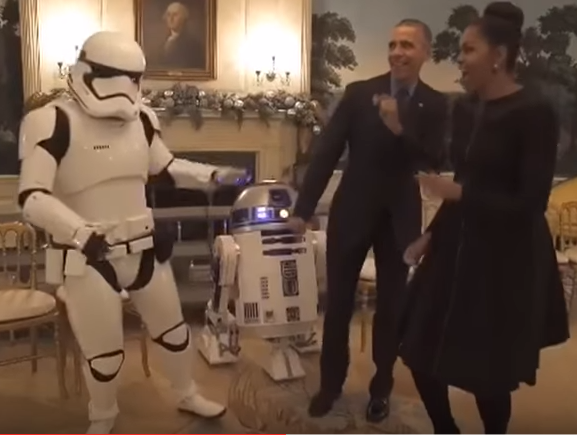 Президент США Барак Обама и его супруга Мишель станцевали вместе с дроидом R2-D2 и имперскими штурмовиками.