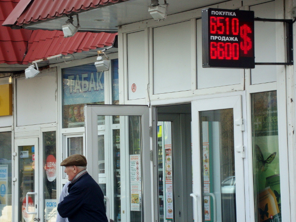 У вход в обменный пункт. Москва. Фото: Полит.ру При этом рубль далеко не обязательно ждет крах. Эксперты банка Goldman Sachs считают, что российская валюта недооценена даже после ралли, которое отмечалось с начала года и привело к укреплению рубля на 14%. По мнению стратега банка, «справедливым» является курс доллара ниже 60 рублей.