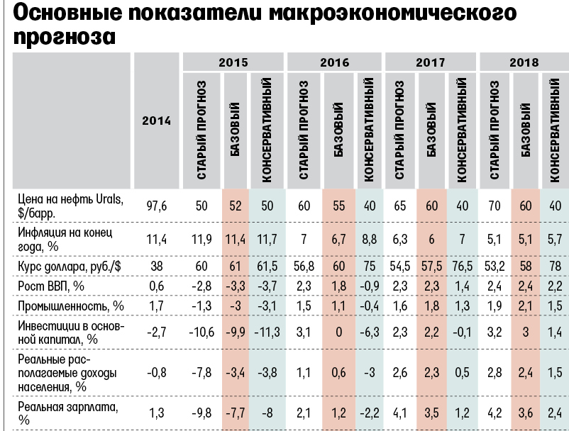 "Основные показатели макроэкономического прогноза" в августе 2015. Фрагмент. Источник: Минэкономразвития РФ При этом российское правительство планирует сбалансировать бюджет 2019 года за счет экономии расходов в размере 1% ВВП. Более того, именно с учетом этого власти связывают свои надежды на рост экономики.