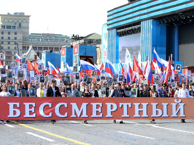 "Бессмертный полк" - общественная акция-шествие, во время которой люди несут фотографии своих родственников, участвовавших в Великой Отечественной войне. Название акции "Бессмертный полк" придумали сотрудники лишенной эфира телекомпании ТВ-2 в 2012 году в Томске. Тогда по центральной улице города прошли более 6 тысяч человек с портретами родственников-фронтовиков. После к поддержке формата подключились "Единая Россия" и провластный "Общероссийский народный фронт", и в прошлом году акция прошла во многих городах России, а также за рубежом.