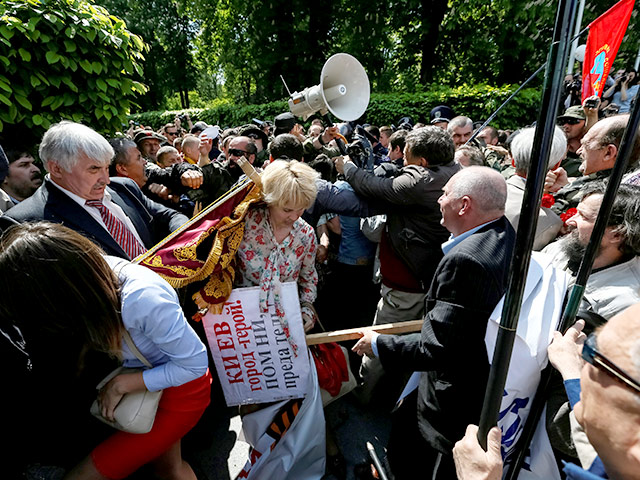 К участникам киевской акции "Бессмертный полк" присоединились сторонники лидера Прогрессивной социалистической партии Украины Натальи Витренко и хоругвеносцы - представители пророссийской религиозно-политической организации, сообщает сайт "Левый берег". Участники марша подошли к парку Славы, где начали оттеснять полицейских. В ходе небольшой потасовки с правоохранителями сторонники Витренко распылили слезоточивый газ. В итоге началась драка, однако пострадавших не было - у участников акции оказались лишь сломаны несколько зонтов. Полицейские оперативно развели конфликтующих.