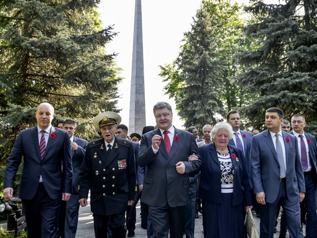 При этом Петр Порошенко заявил, что спустя 71 год после победы над фашизмом Украине пришлось столкнуться с новой агрессией, отмечает сайт "Диалог.ua". "Невольно верится в какую-то мистическую прозорливость наших предков, которые создали памятник Богдану Хмельницкому на Софиевской площади и монумент Родине на Днепровских склонах. Там булава, щит и меч пророчески повернуты в сторону, откуда два года назад в Украину пришла военная орда. Будто они нас о чем-то предупреждали", - сказал глава государства.