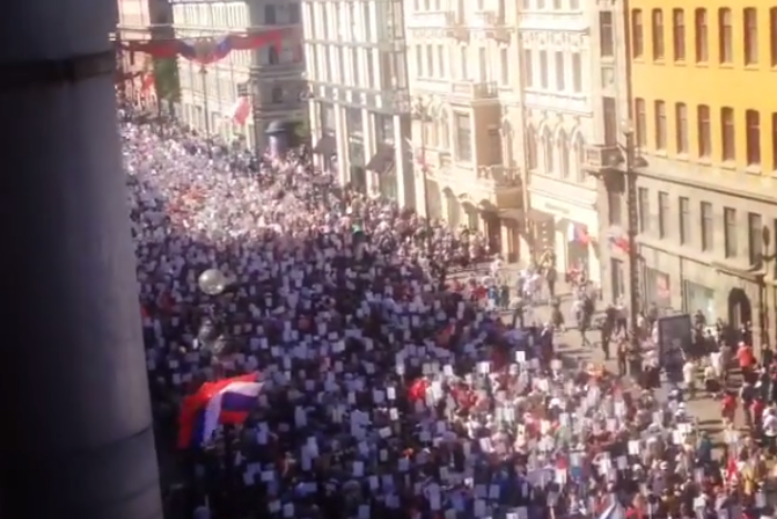 Колонна «Бессмертного полка» заполнила весь Старо-Невский проспект