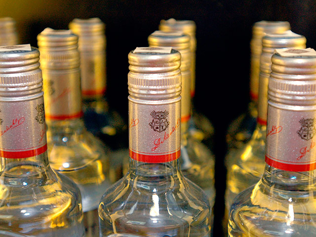 Горлышко подаренных бутылок с водкой украшает стикер в виде георгиевской ленточки. Саму водку произвела компания, входящая в холдинг отца депутата.