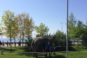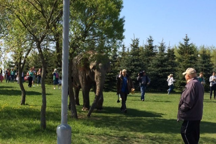 По данным властей, слона привезли на День Добра для участия в представлении для детей. По словам чиновников, он отлично себя чувствует:«погулял, пообливался водичкой, со всеми поздоровался и уже готов выйти на сцену. Откуда – секрет».