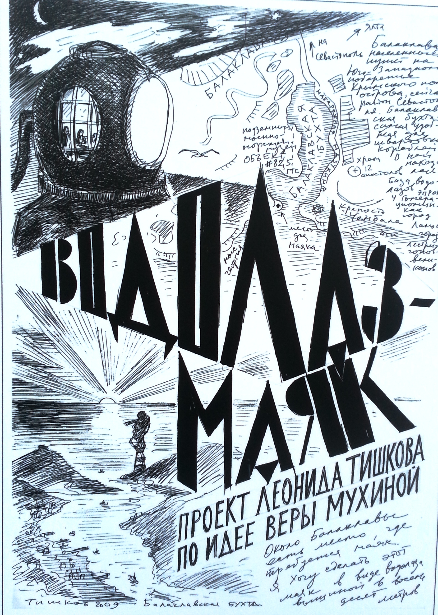 Леонид Тишков говорит, что у Веры Мухиной не было ни рисунков, ни скульптурных моделей "Водолаза-Маяка". Только идея. Впрочем, это и не важно: