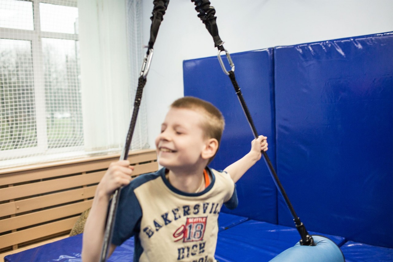 Если ребенок хочет сок, мы его спрашиваем: «Ты хочешь пить?» Он не может ответить, поэтому мы предлагаем ему дать нам карточкуМногие дети с аутизмом испытывают трудности в восприятии и обработке сенсорной информации — звуков, запахов, прикосновений. Поэтому мы назначаем ребенку «сенсорную диету». В этом нам помогает специальный зал сенсорной интеграции, где есть качели, различные крутящиеся подвесы, мячики и другие приспособления.