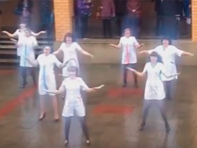 Девушки в белых халатах выходили из машин и здания поликлиники и начинали танцевать под песню Филиппа Киркорова "Медсестра" - под проливным дождем, на глазах удивленных прохожих и проезжавших мимо водителей.