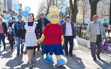 Кроме того, один из участников демонстрации был одет в костюм Барта Симпсона, что, по мнению полиции, также является нарушением, поскольку костюм закрывал его лицо.
