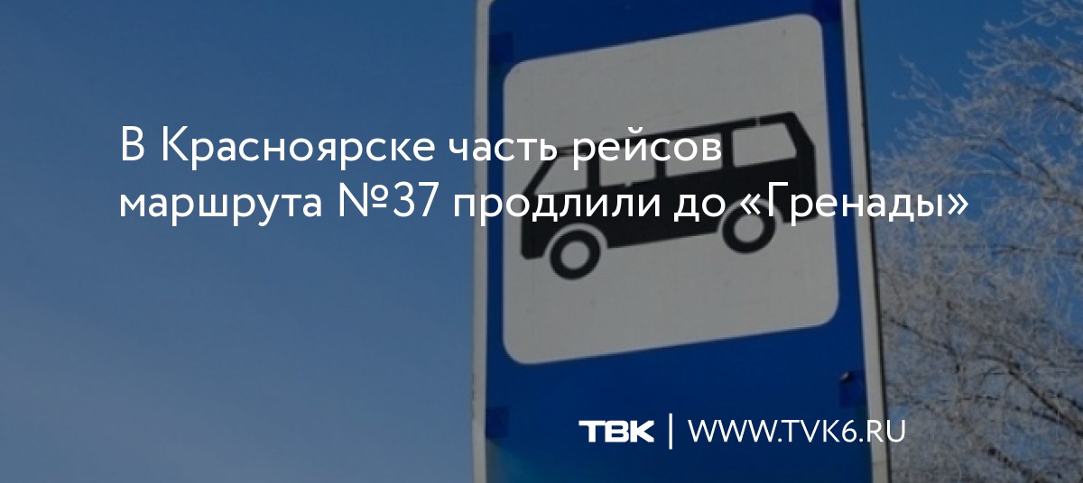 С сегодняшнего дня, 16 мая, часть маршрутных автобусов №37 в будние дни будет ездить до «Гренады».В Красноярске на весенне-летний период продлили маршрут автобуса № 37 до оздоровительного лагеря «Гренада», сообщили в пресс-службе администрации города.