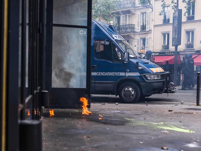 В Париже, где протестуют правоохранители, неизвестные подожгли полицейский автомобиль