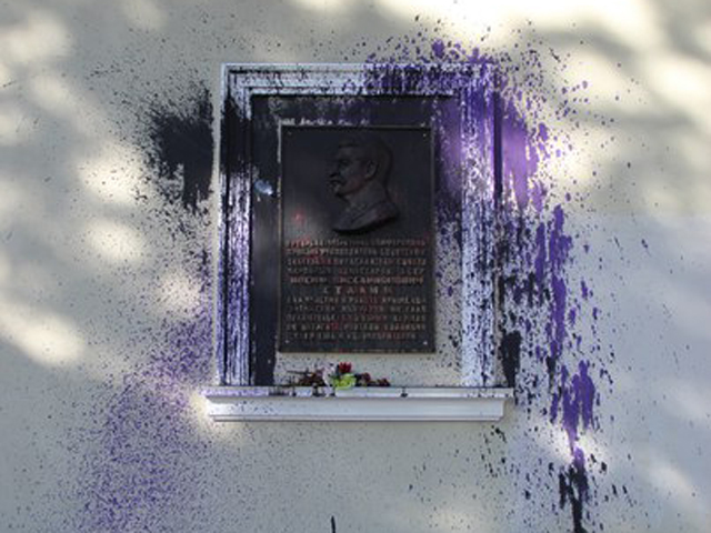 В Крыму облили краской памятную доску Сталина в годовщину депортации крымских татар
