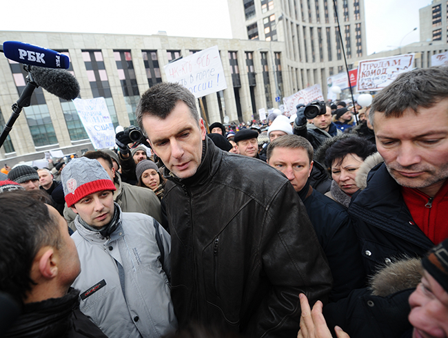 While these negotiations were underway, the "For Fair Elections" demonstrations were gaining momentum in Moscow. On December 24, 2011, Prokhorov towered over the crowd in Sakharov Prospekt at the largest protest in the history of the so-called “White-Ribbon” movement.