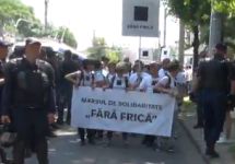 Однако после того, как большая людей спортивного телосложения в футболках с надписью Nous Dreapta (крайне правая националистическия и религиозная группировка) направилась в сторону марша "Fără frică", полиция предложила организаторам изменить маршрут. Участников акции посадили в автобусы и увезли из центра города.